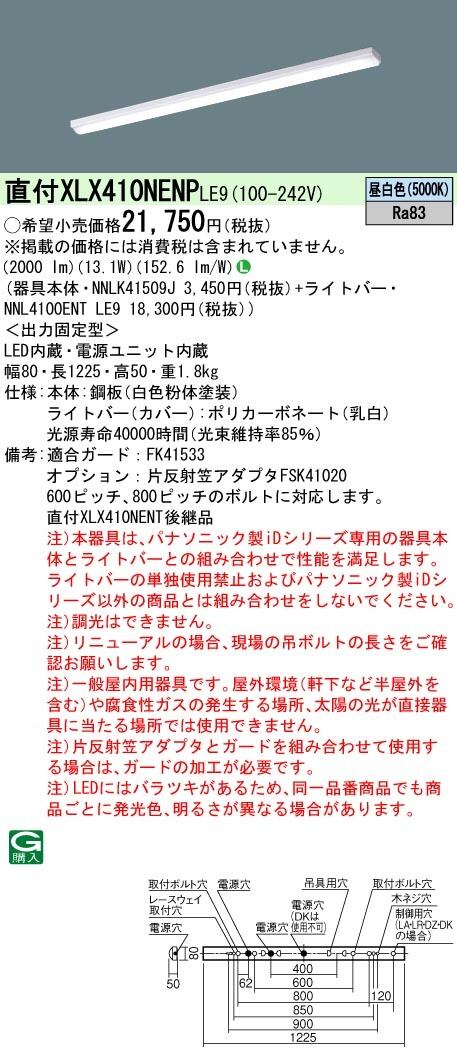 XLX410NENP LE9 【Panasonic 天井直付型 40形 一体型LEDベースライト iスタイル/ストレートタイプ/笠なし型 直管形蛍光灯FLR40形1灯器具相当 FLR40形・2000 lm(節電)